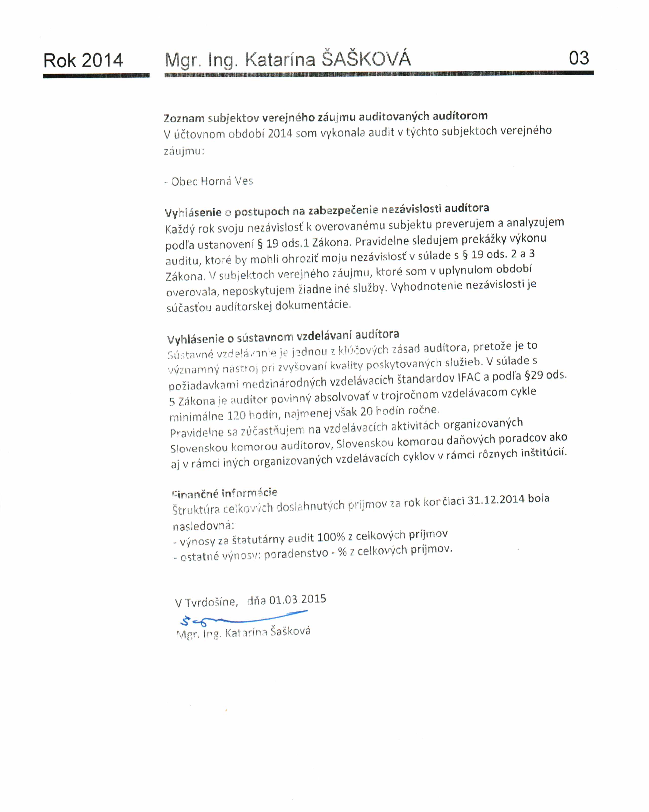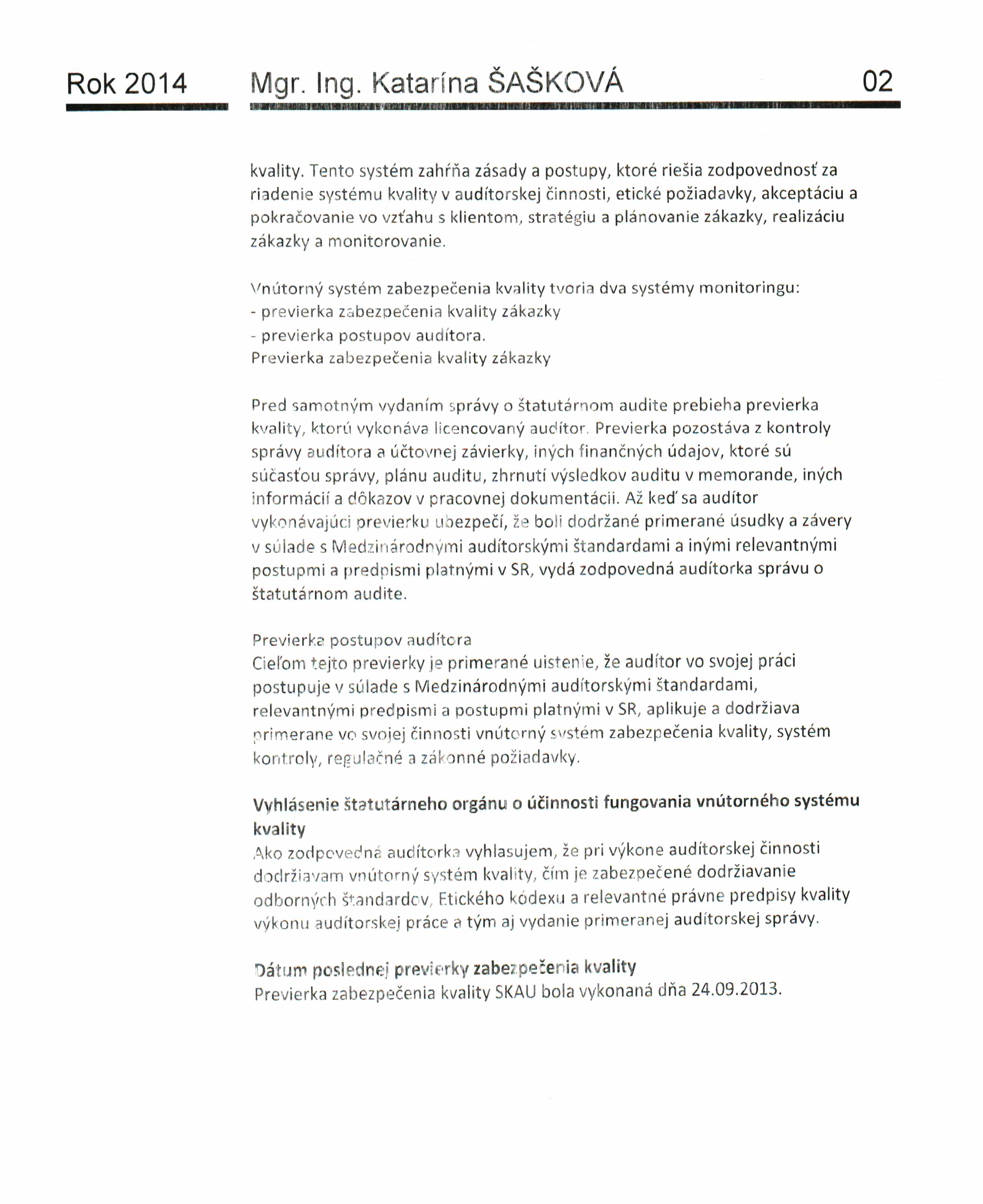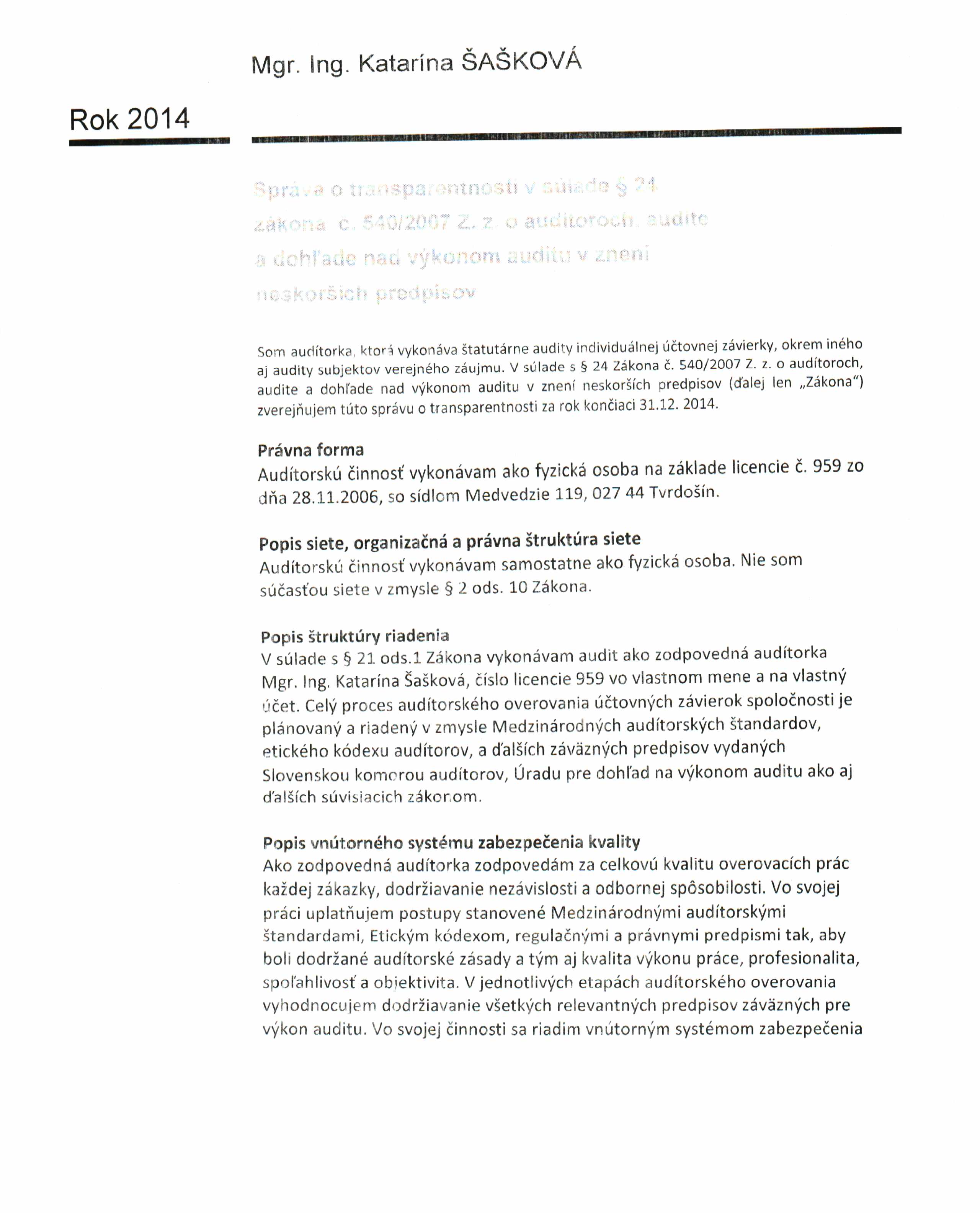 Správa o transparentnosti 2014